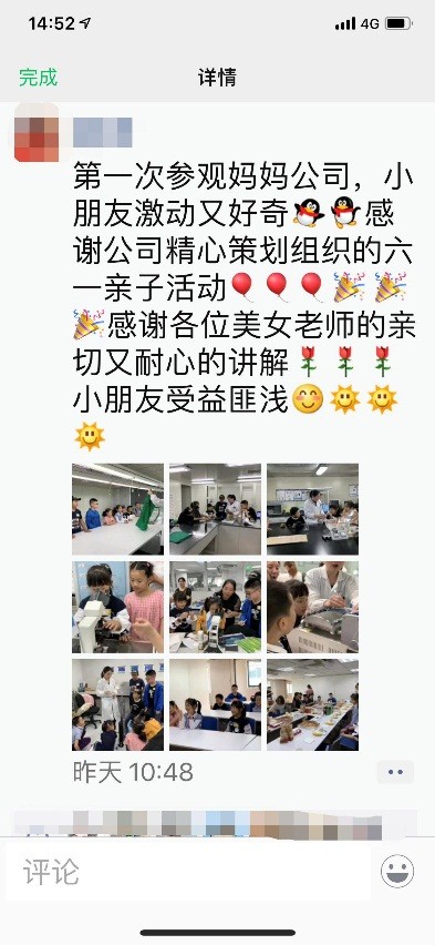 今天可以看到這么多先進的設備,聽到這么多在學校里沒有接觸過的知識,體驗爸爸媽媽的日常工作、小朋友們都露出了滿足的笑臉、據說已經有小朋友開始咨詢下一次的活動日期啦。